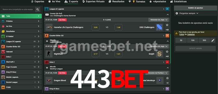 O 443bet oferece uma grande seleção de opções de apostas em e-sports com probabilidades competitivas